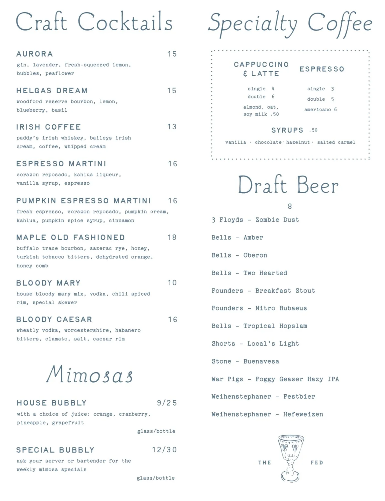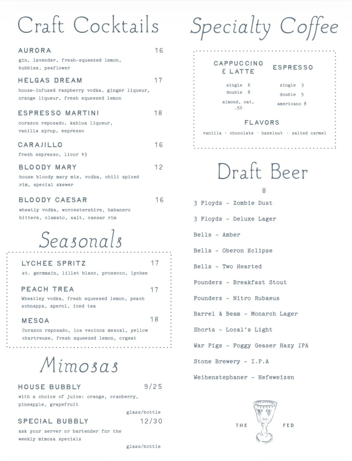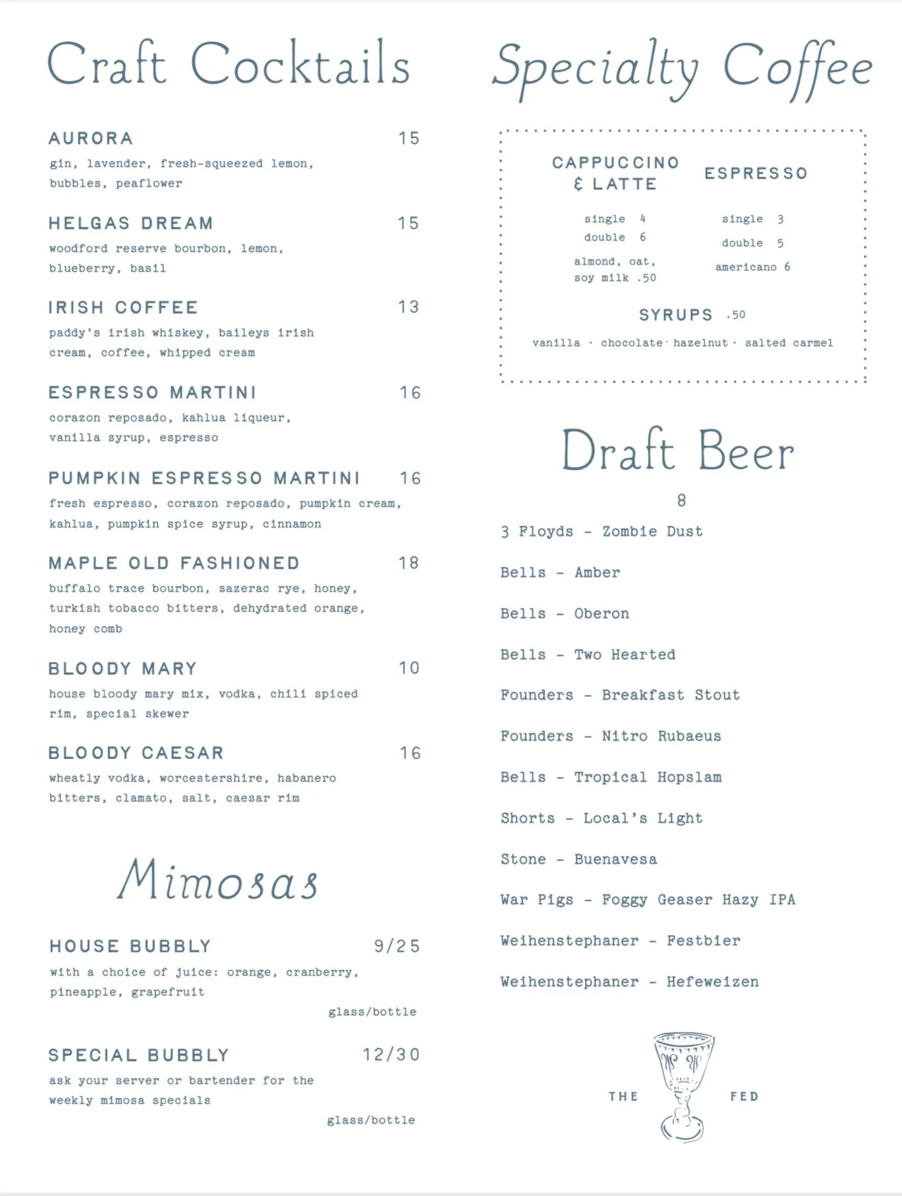 The Fed Community is a scratch kitchen establishment, meaning our menus evolve Frequently.